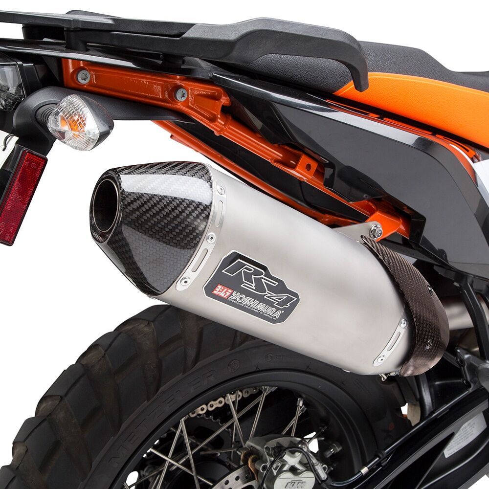 We started off by developing our Works Finish RS-4 muffler profile to compliment power delivery. This new KTM responded to our design even more than we had hoped, increasing 5.5% in max HP, and 4.7% in max torque. To add to the aesthetics and protection we included a carbon heal guard. That Yoshimura power and rumble that our RS-4 delivers is perfect for both on and off-road adventures.