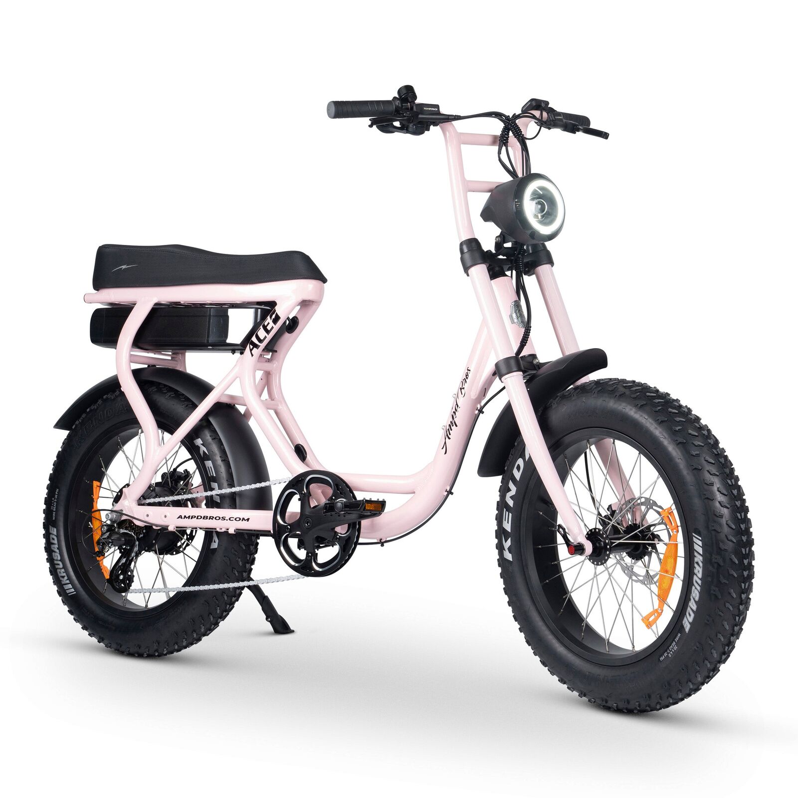 The ACE-S takes performance up a notch with our Custom Master Control unit, providing top-tier power density and advanced motor control algorithms. Seamlessly integrating light controls, improving reliability and simplifying diagnostics. The ACE is your go-to for all terrain adventure thanks to its 20x4" Fat Kenda krusade mud tyres, a High Torque Bafang Rear Hub Motor and Tektro Hydraulic Disc Brakes, guaranteeing a smooth and secure ride.