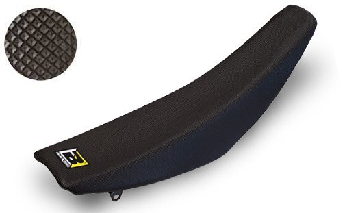 Universal seat cover with extra material to fit most dirt bike seats.