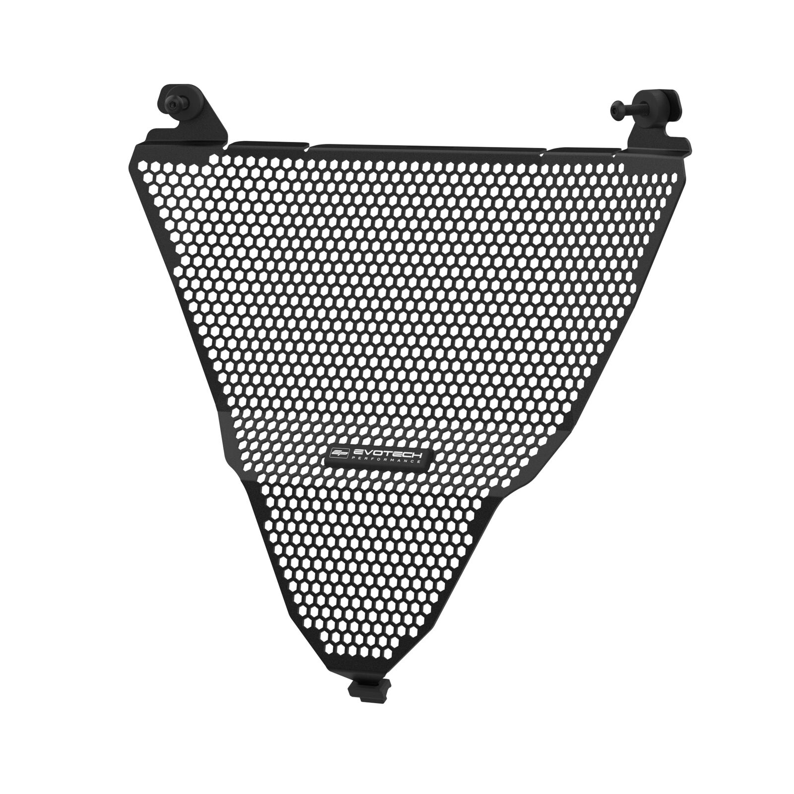 The Evotech Header Guard set has a unique design for the Yamaha YZF-R9: precision-machined for an accurate fit and shaped to follow the curve of the machine. Manufactured from aluminium with a durable powder-coating, the hexagonal matrix of holes allows consistent air flow whilst maintaining strength. For the finishing touch, replacement Evotech badges can be purchased to personalise the EP protective part’s styling.