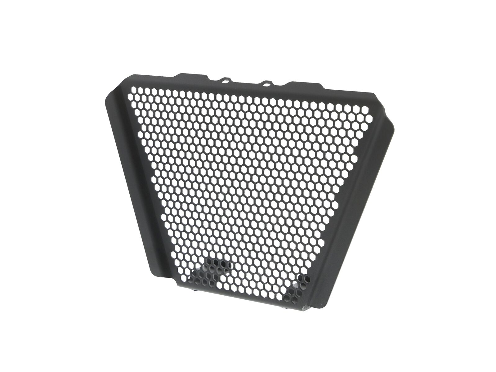 Prevention is better than an expensive cure- The EP oil cooler guard protects the Aprilia RSV4 1000 APRC oil cooler from being damaged, while allowing cooling air to pass through to cool the pumped engine oil. The cooler unit consists of delicate cooling fins and internal cores - the fins easily bend and block the passage of air, which can result in the engine overheating. Also, the cooler's internal cores can easily be holed by stones to cause the oil to leak / spray out. Leaking oil can result in low engine oil pressure and cause serious engine damage. If leaked oil gets onto the motorcycle's tyres, there is a good chance of sudden lack of grip.