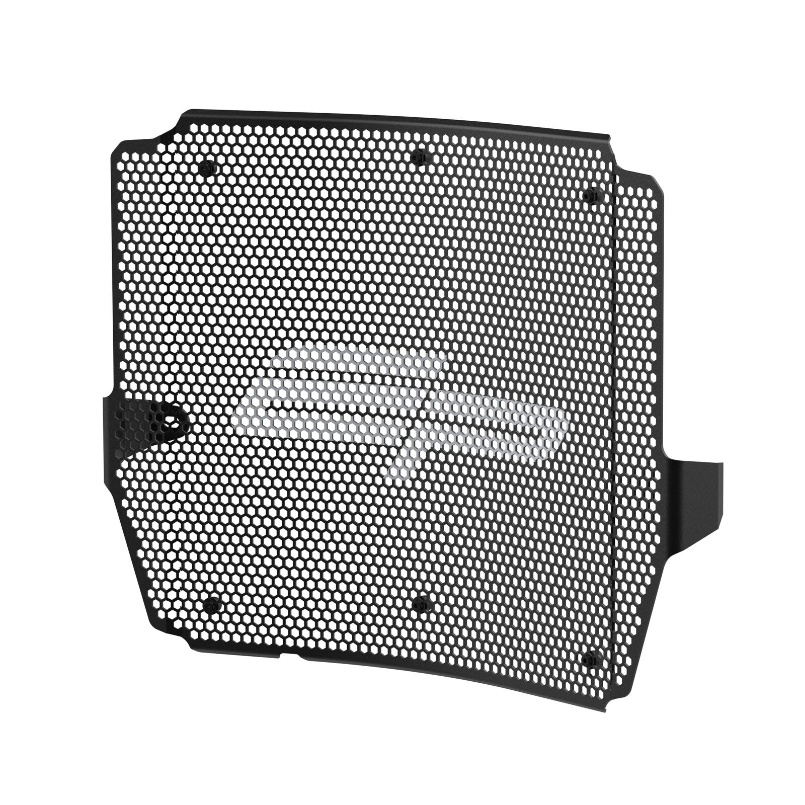 Hexagonal hole pattern to optimise airflow whilst providing maximum protection from road debris.