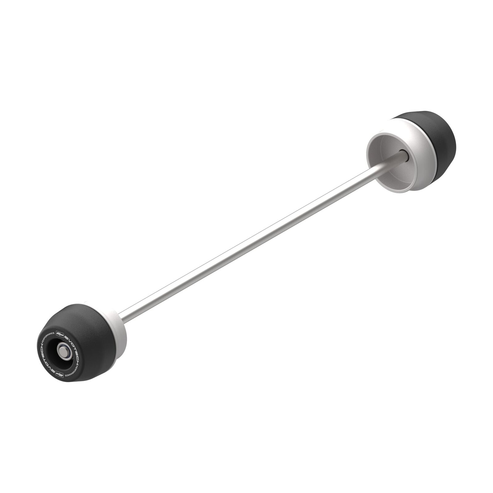EP Rear Spindle Bobbins for the KTM 990 Duke offer crash protection to both sides of the costly swing arm. Nylon bobbin heads, covering an aluminium core, protrude from the swing arm to help absorb initial impact in any crash. The innovative design allows the slider to rotate to decrease stress on the machine. Mounted via the rear wheel spindle using a rolled thread spindle rod.