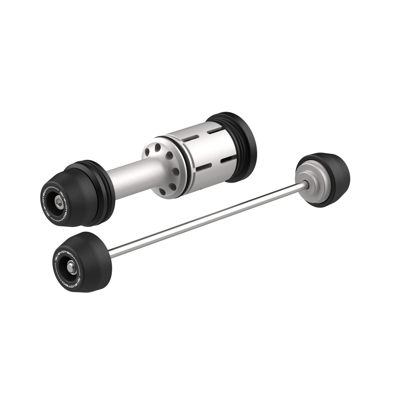 Evotech Performance have developed EP Spindle Bobbins to guard the front fork lowers, brake calipers and rear cardan drive shaft. Fitting neatly through the front wheel, the front protection is mounted via a supplied stainless steel spindle with rolled threads and all fasteners included. At the rear wheel, the innovative drive shaft protection is simple to install: grease, insert and tighten. The wheel’s offside is completed by a precision machined and coated aluminium hub stop. The nylon bobbins all hold an aluminium core to offer hard-wearing protection, reducing costly damage to your motorcycle should the unfortunate occur.