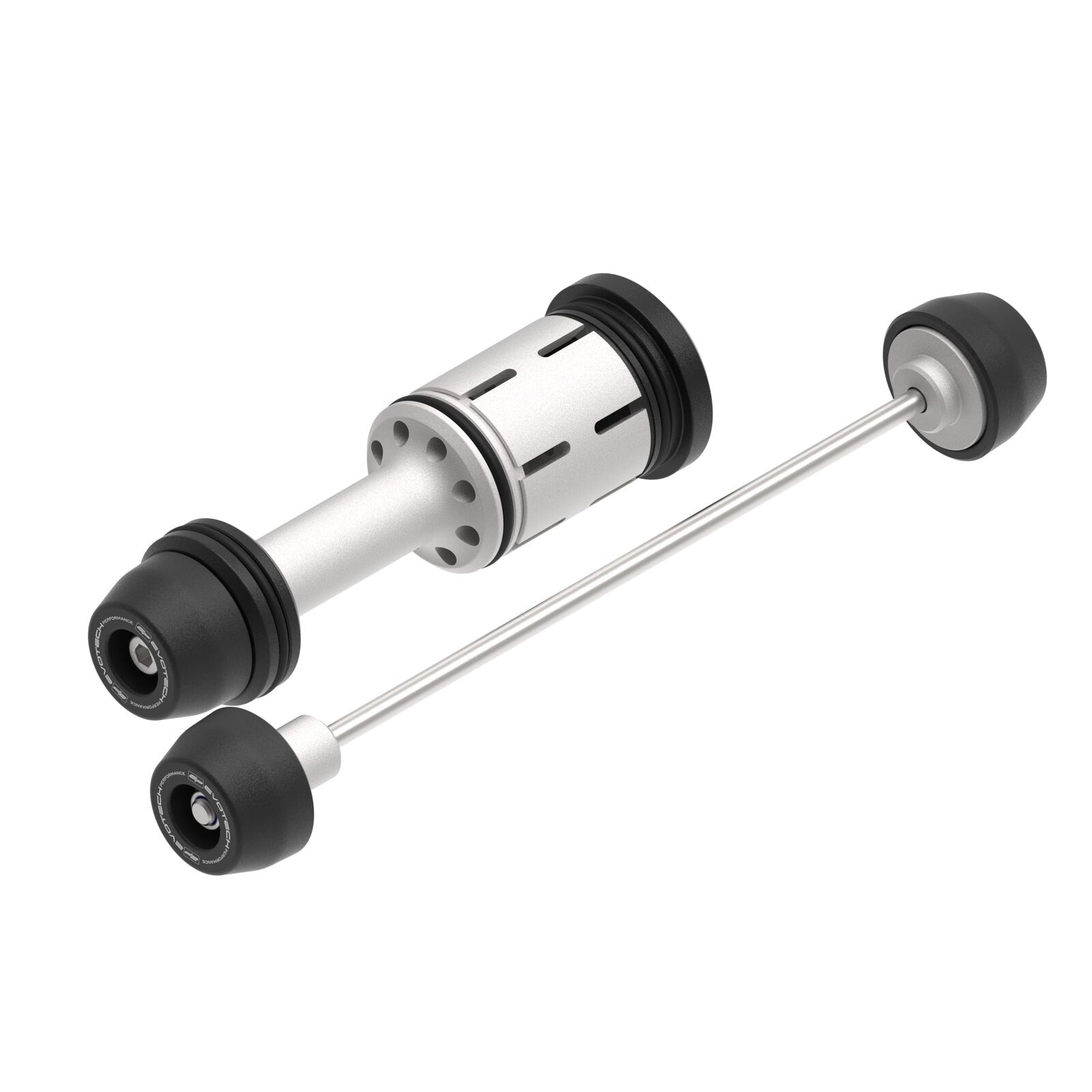 Evotech Performance have developed EP Spindle Bobbins to guard the front fork lowers, brake calipers and rear cardan drive shaft. Fitting neatly through the front wheel, the front protection is mounted via a supplied stainless steel spindle with rolled threads and all fasteners included. At the rear wheel, the innovative drive shaft protection is simple to install: grease, insert and tighten. The wheel’s offside is completed by a precision machined and coated aluminium hub stop. The nylon bobbins all hold an aluminium core to offer hard-wearing protection, reducing costly damage to your motorcycle should the unfortunate occur.