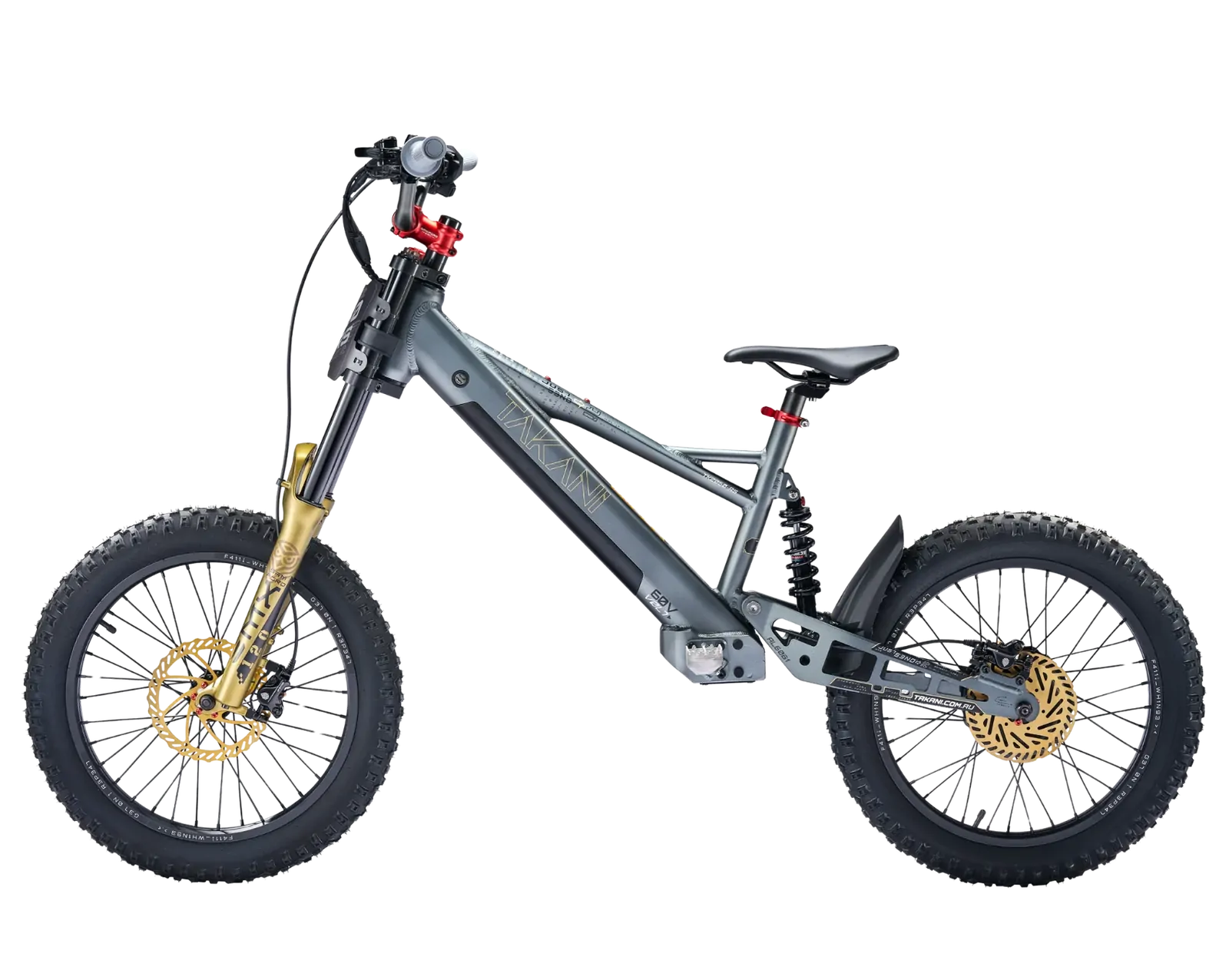 Designed for kids kids aged 10-14, body heights >150cm (and all parents who want to go for a sneaky spin) the TK2060-RS blends a full-suspension mountain-bike, BMX and E-MX.